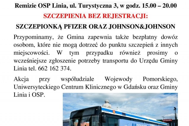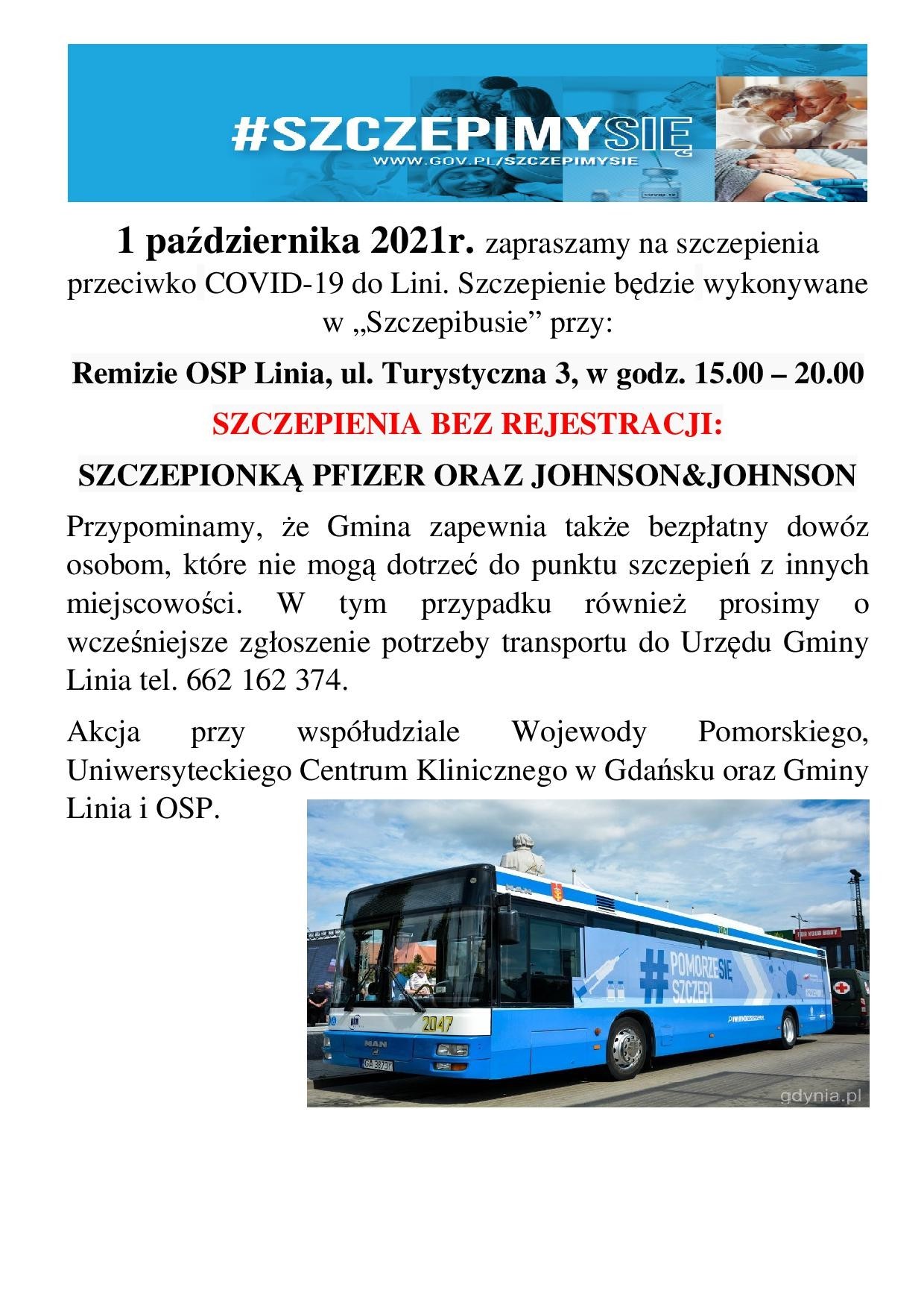 1 października 2021r. zapraszamy na szczepienia przeciwko COVID-19 do Lini
