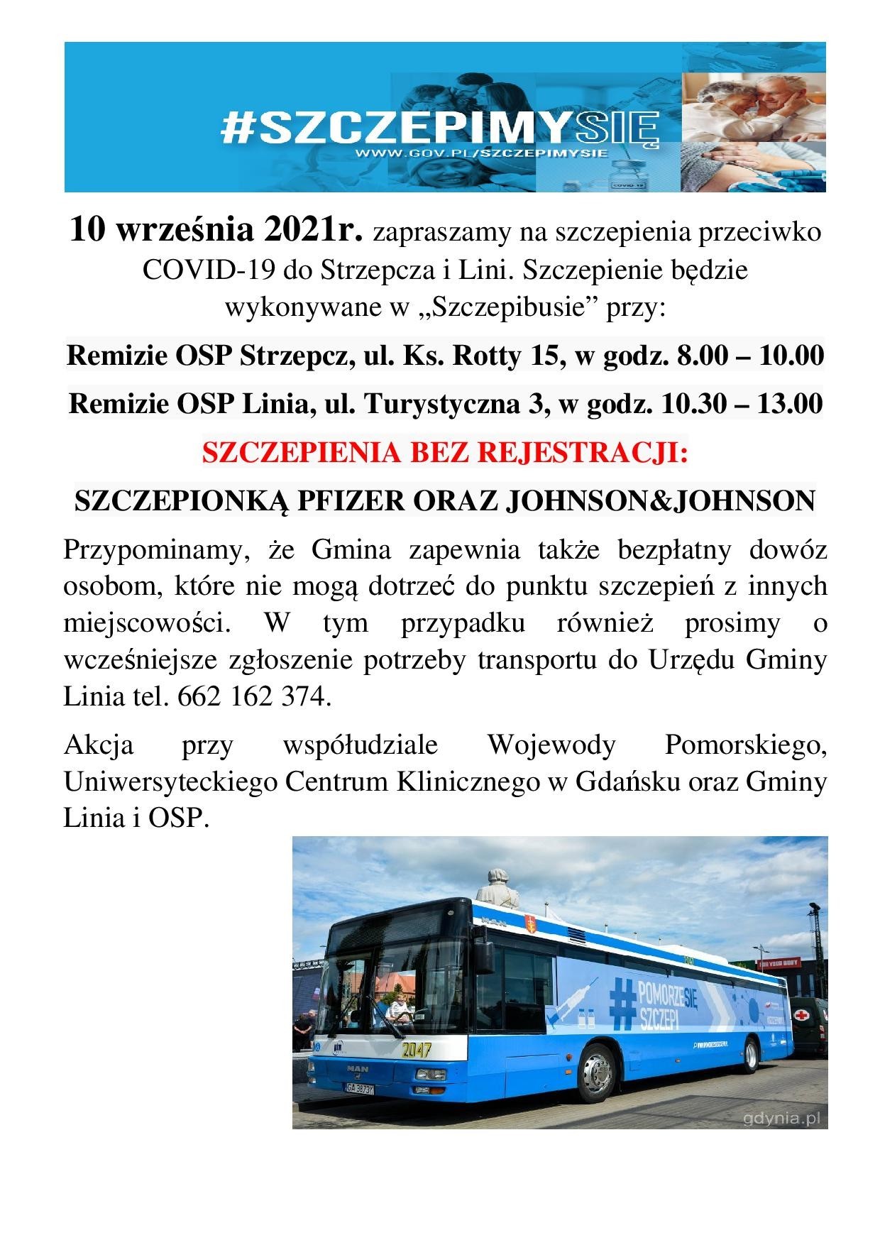 Akcja szczepień w Gminie Linia - 10.09.2021r.