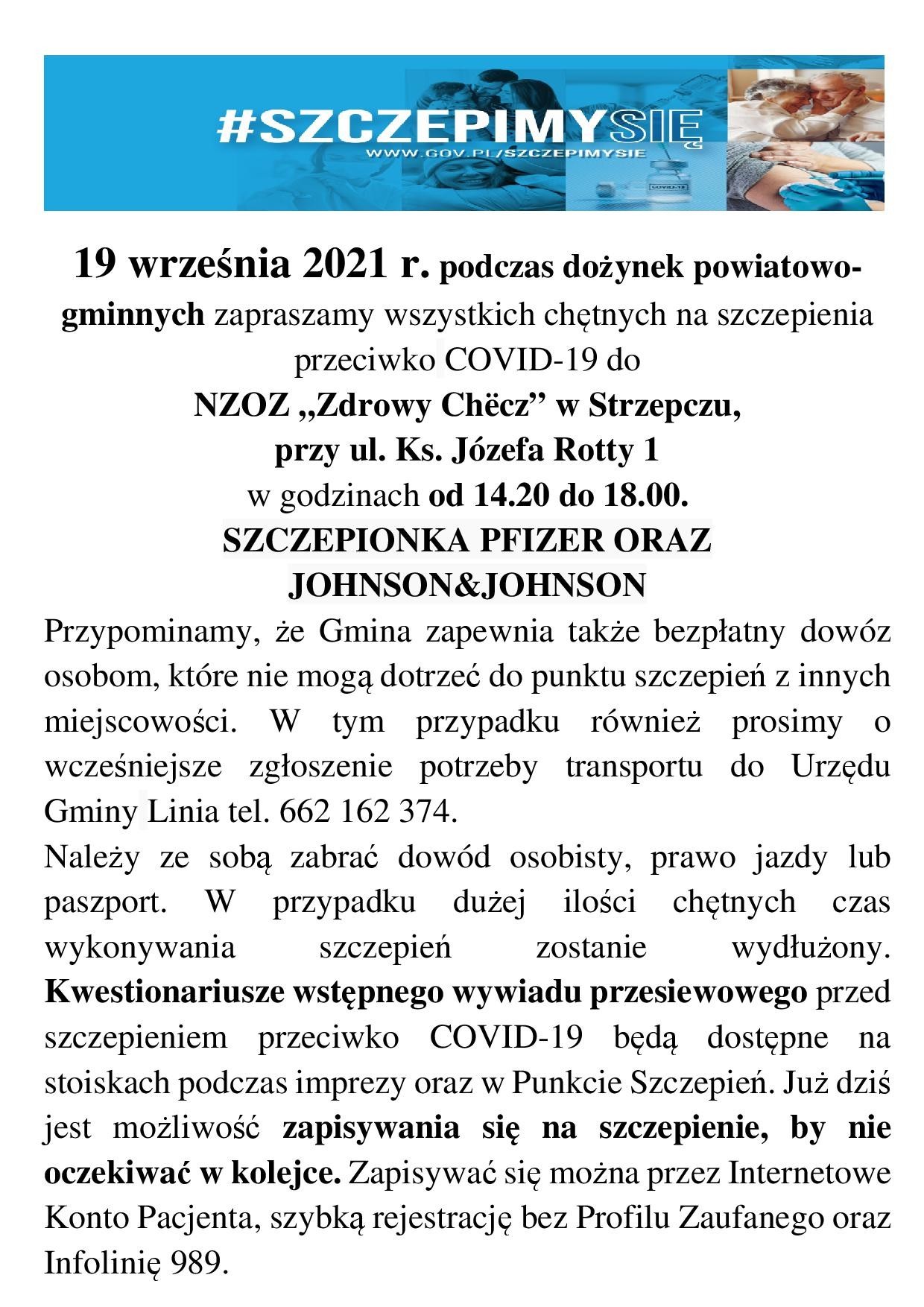 Akcja szczepień w Gminie Linia - 19.09.2021r.