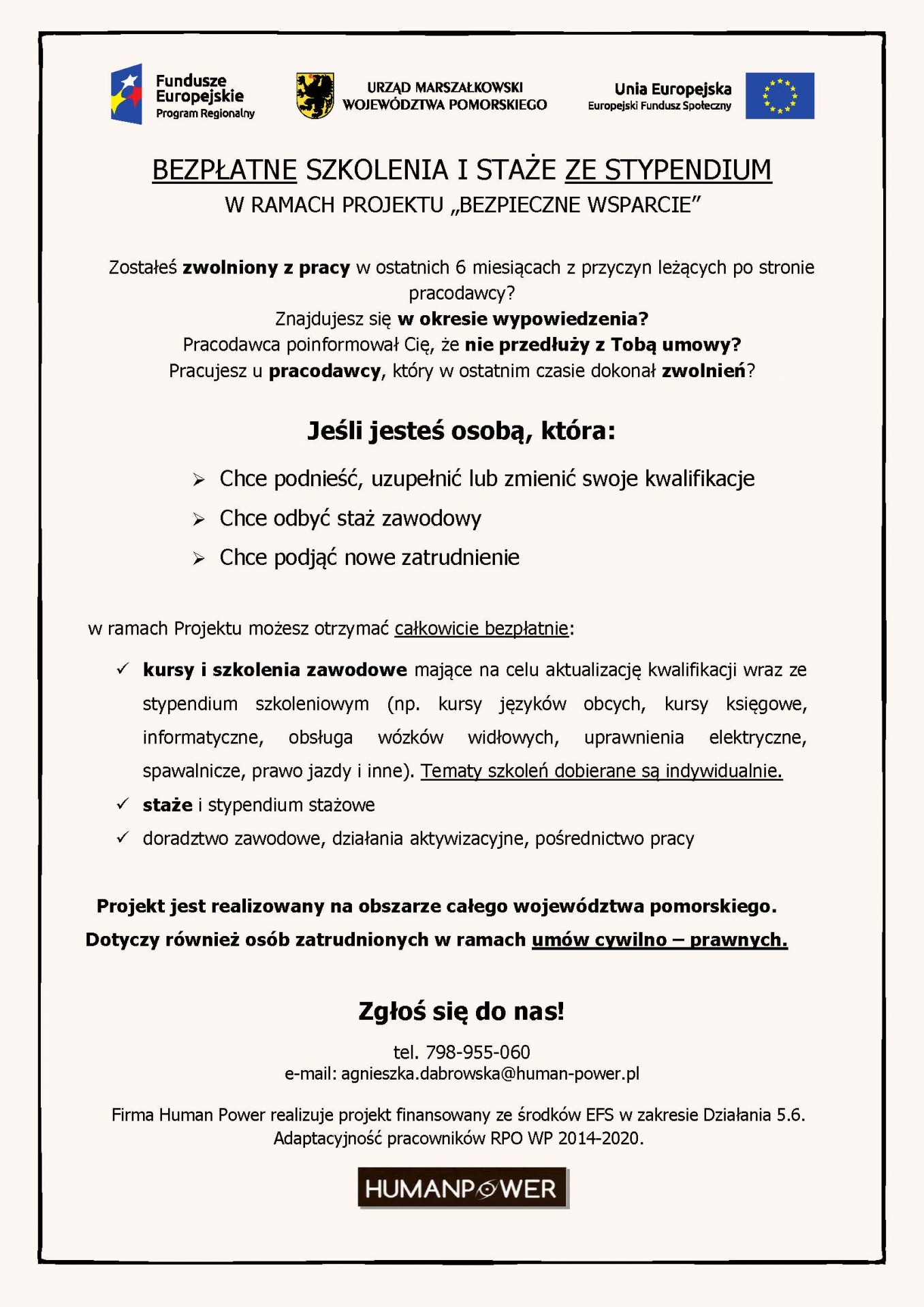 Bezpłatne szkolenia i staże ze stypendium stażowym!