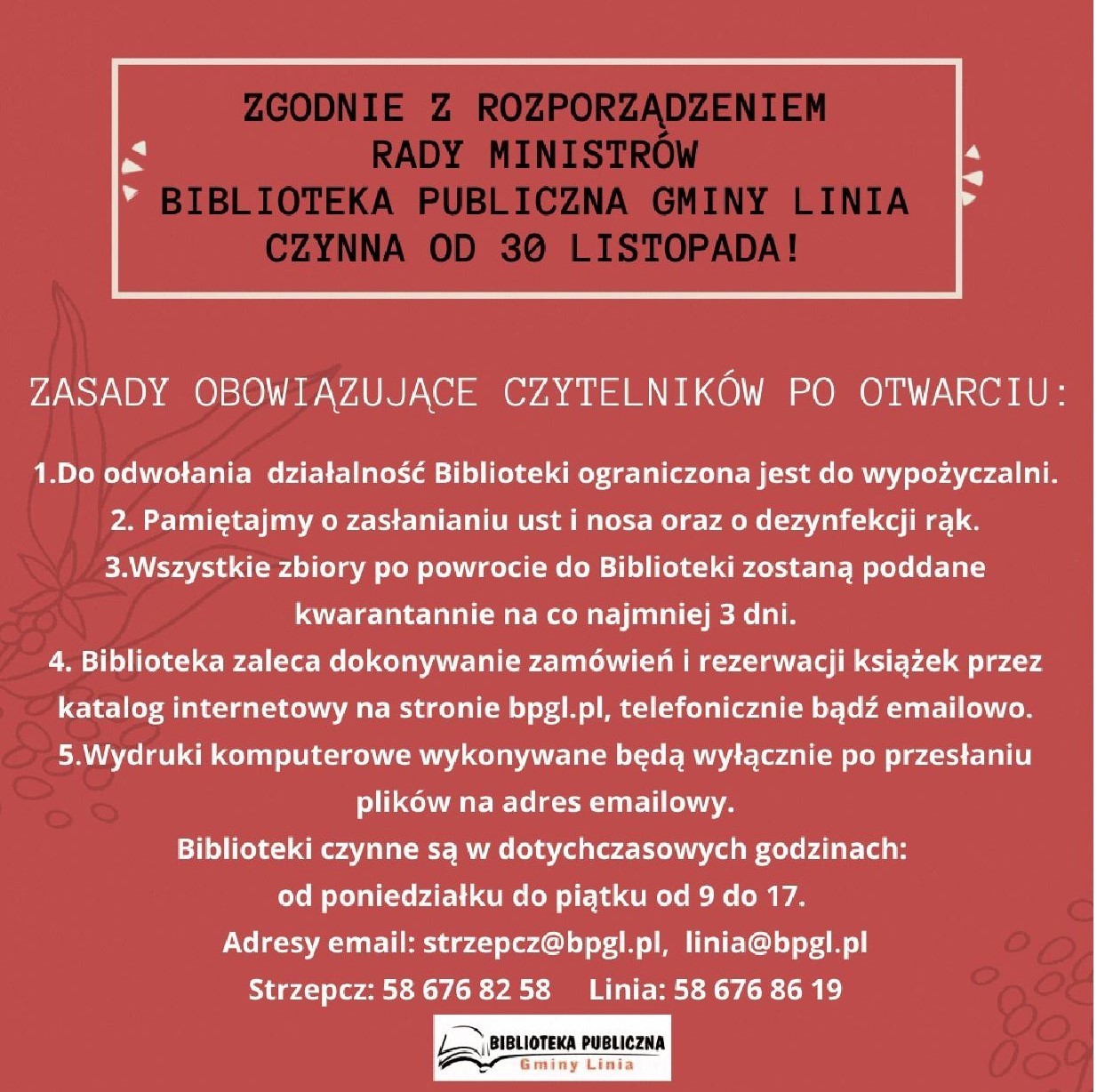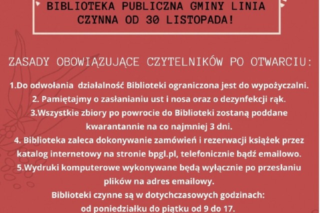 Biblioteka Publiczna otwarta od 30.11.2020