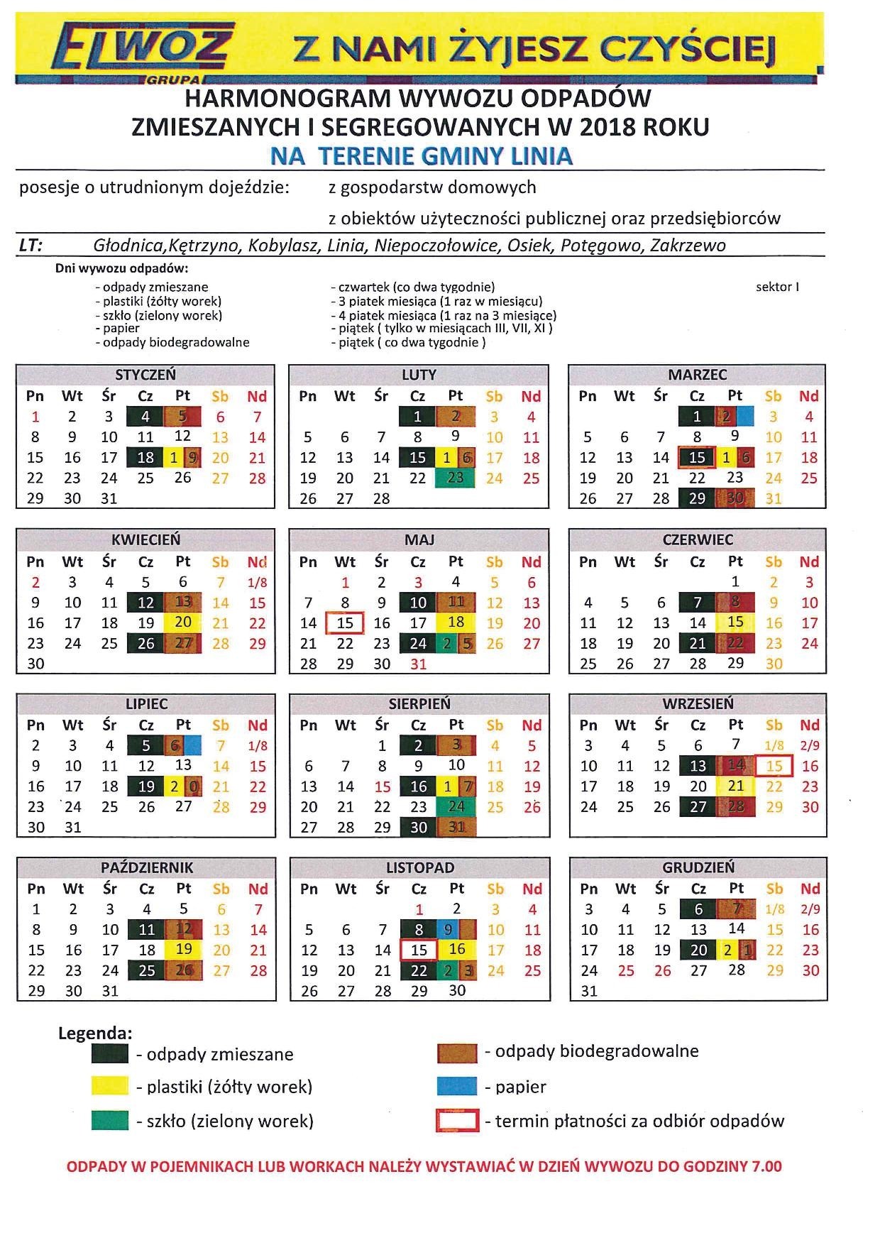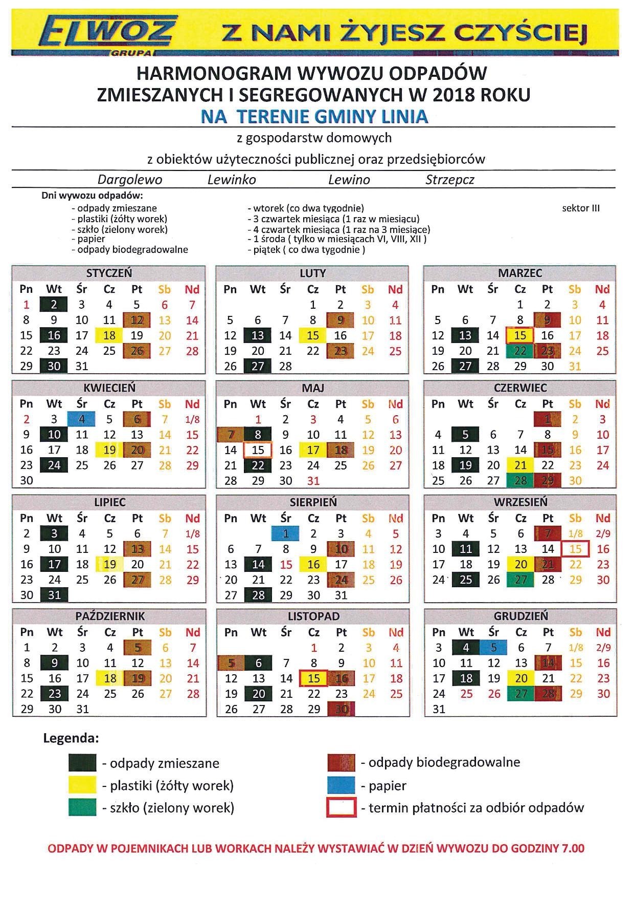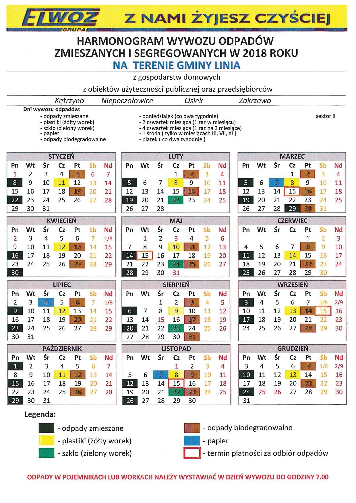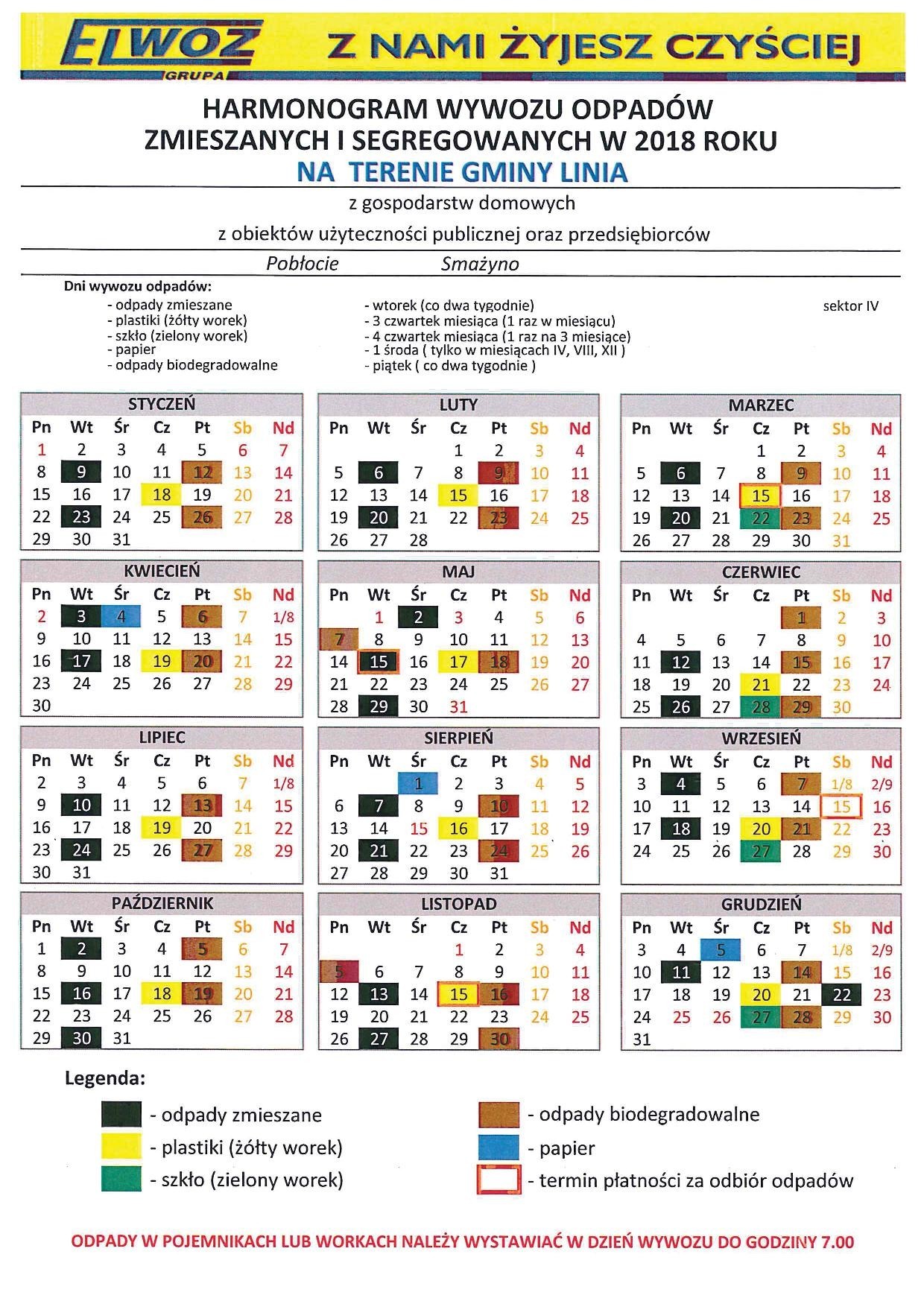 HARMONOGRAM WYWOZU ŚMIECI 2018
