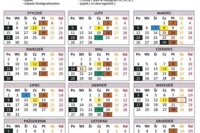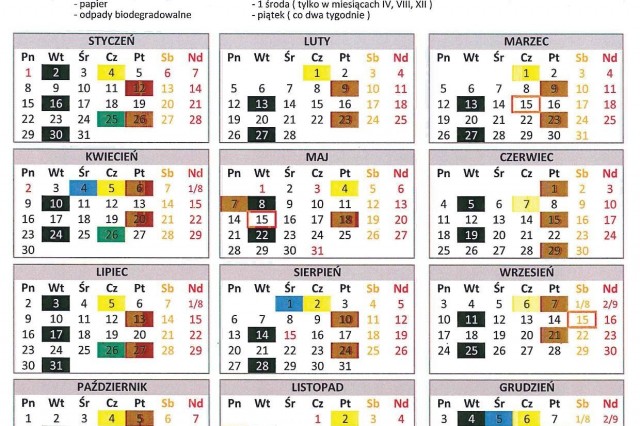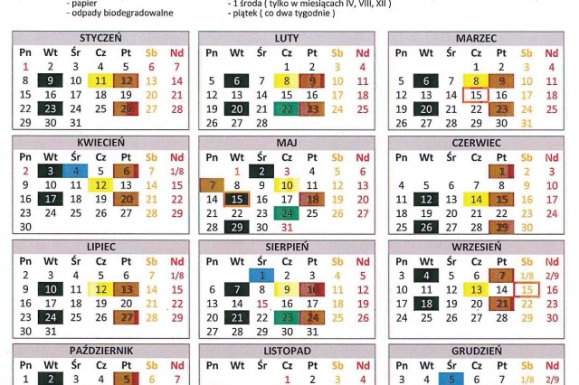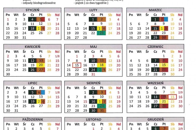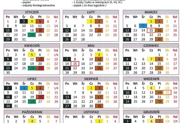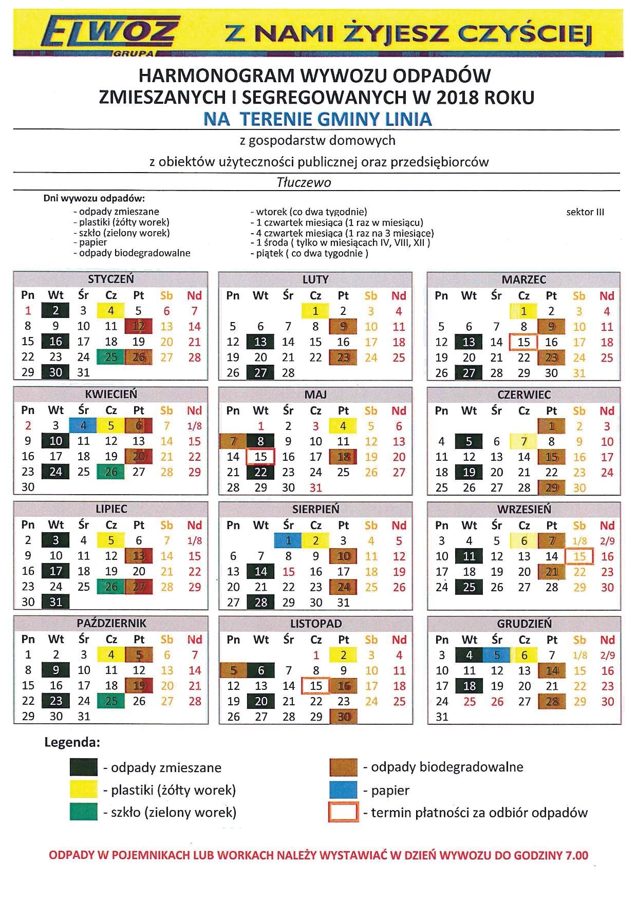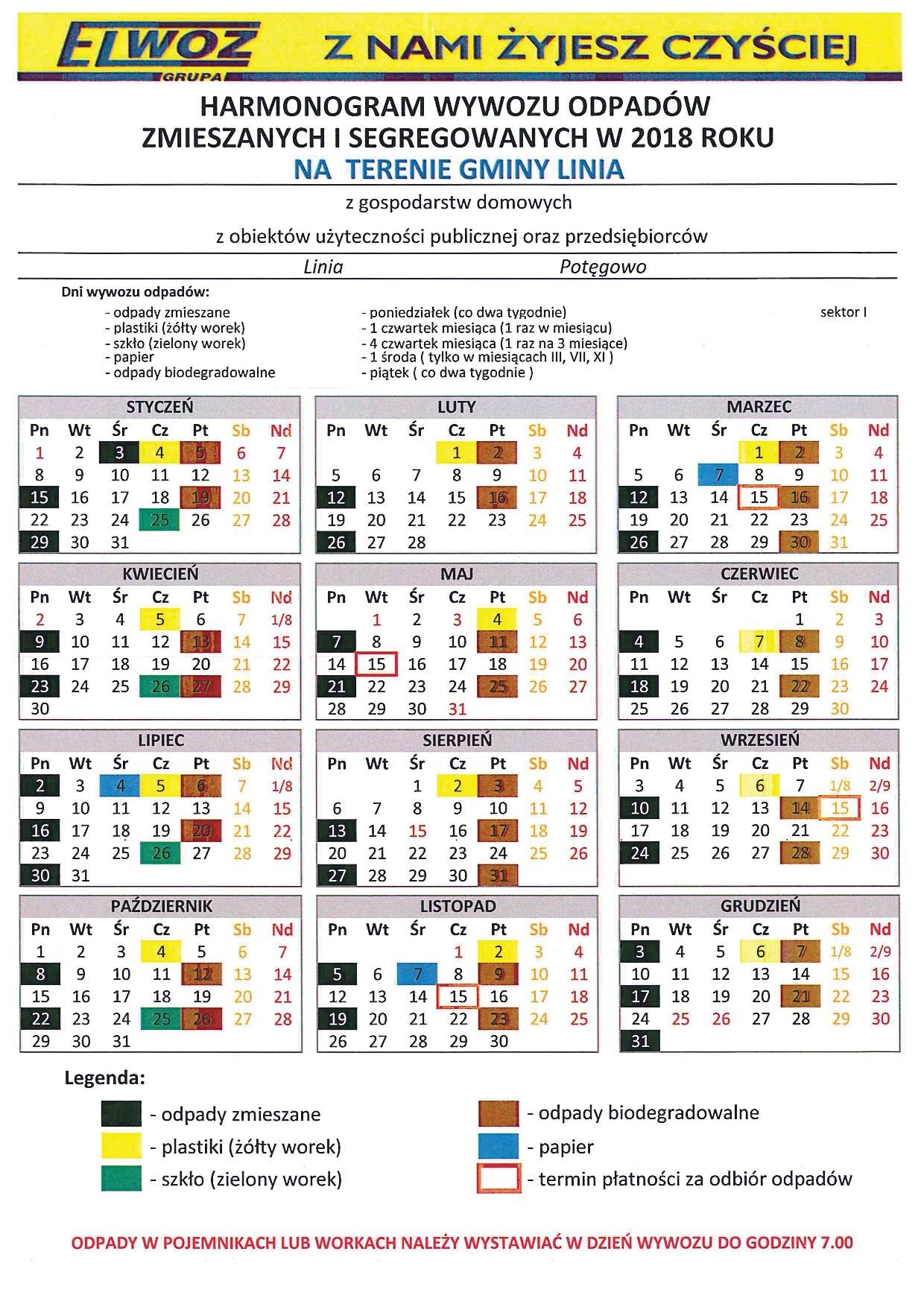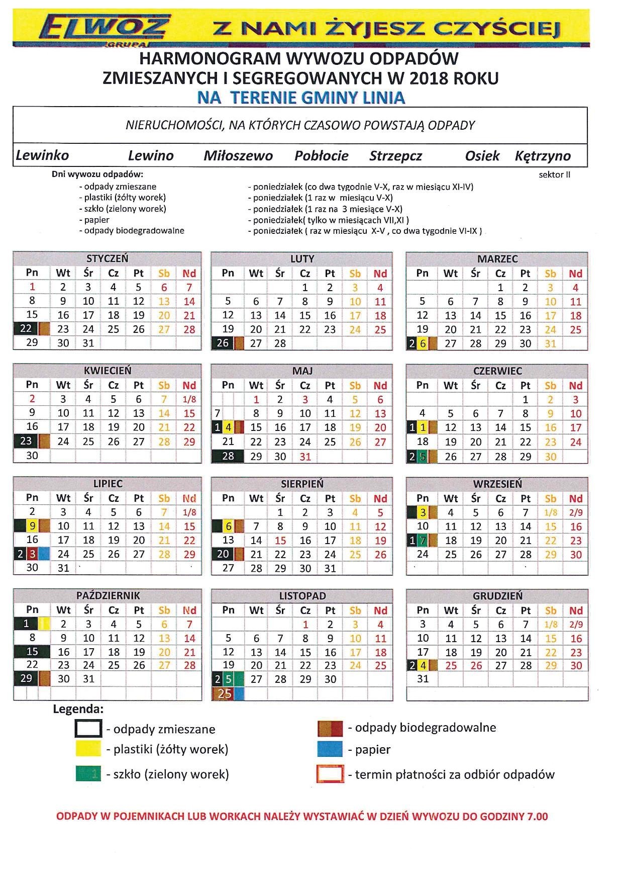 HARMONOGRAM WYWOZU ŚMIECI 2018