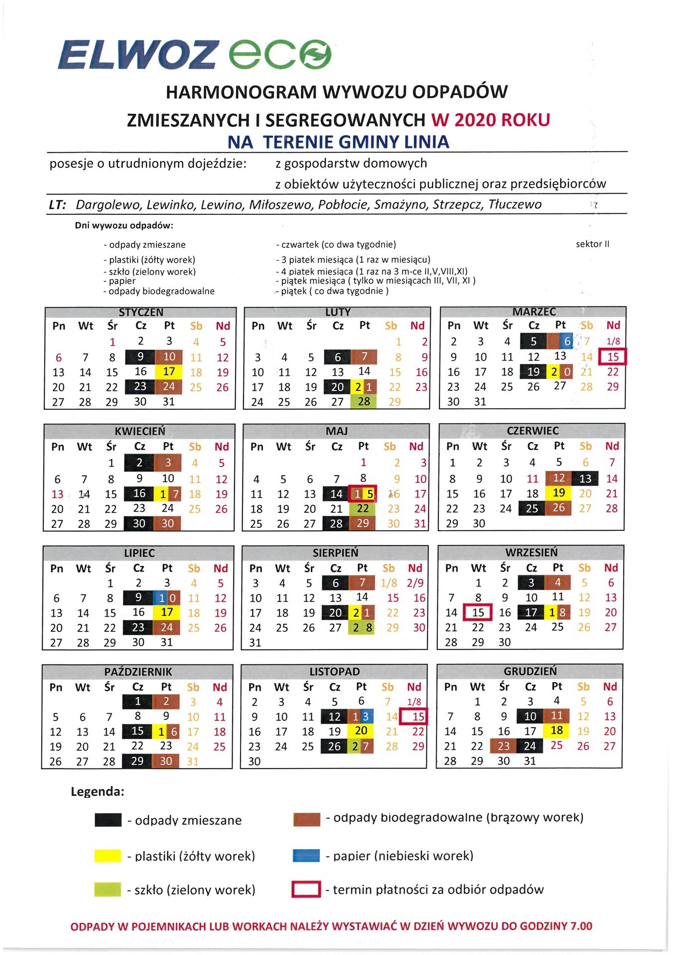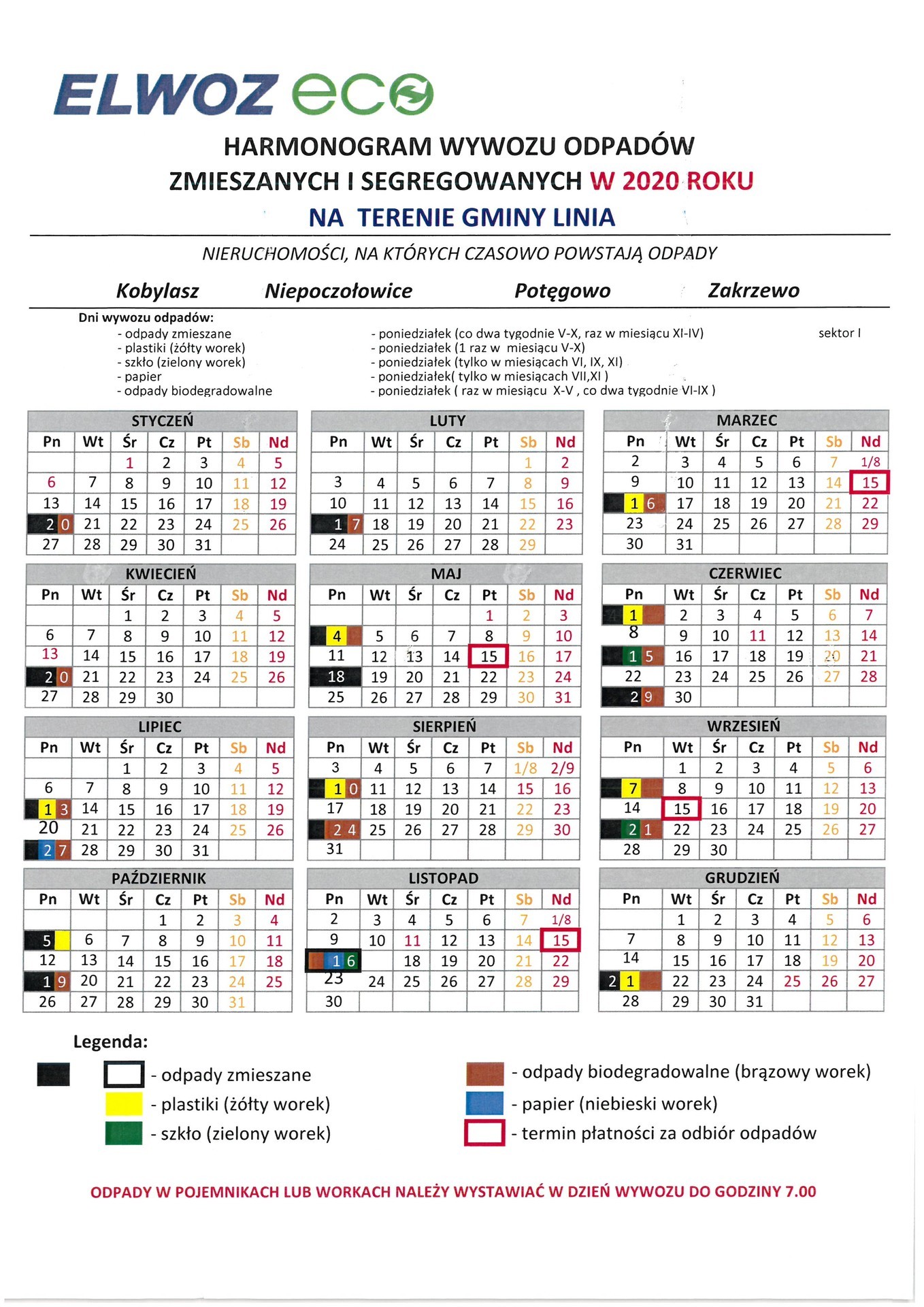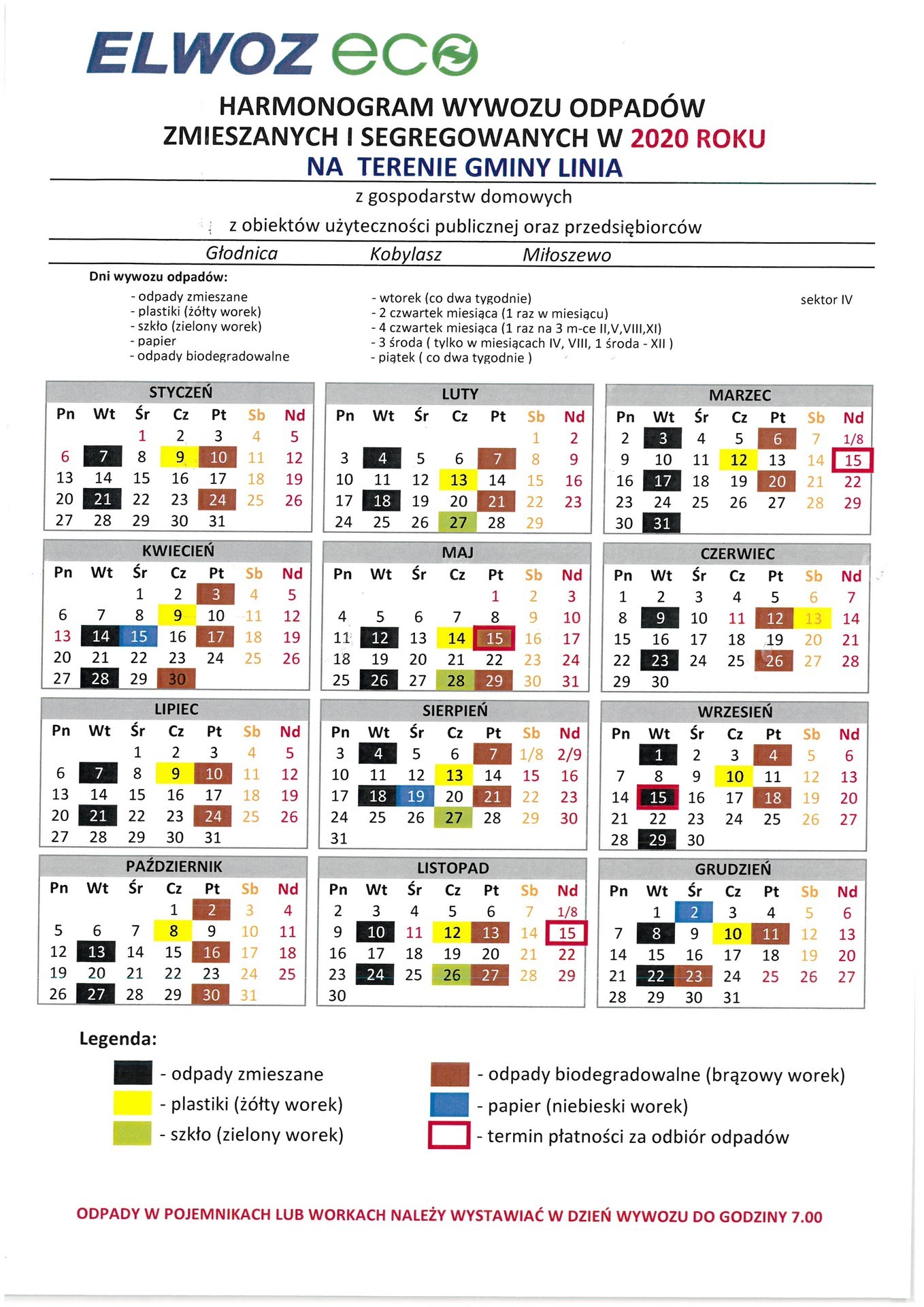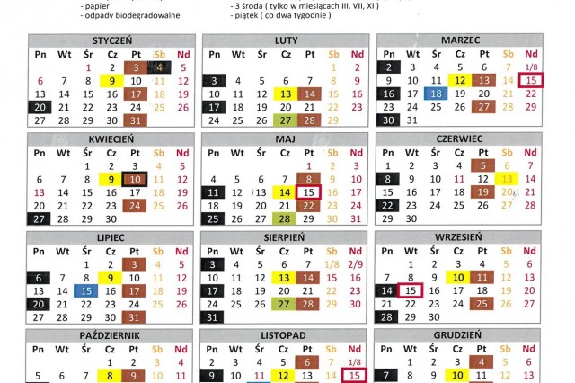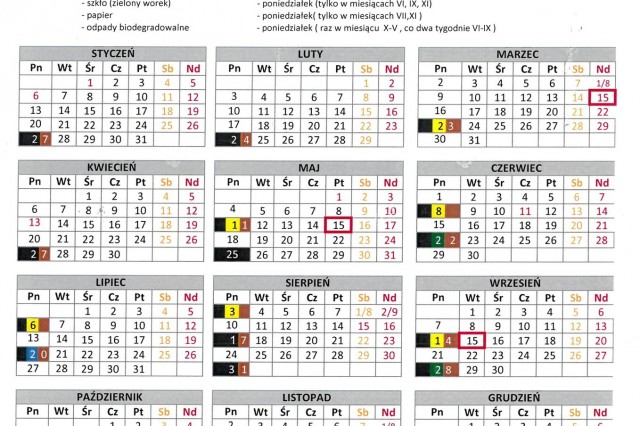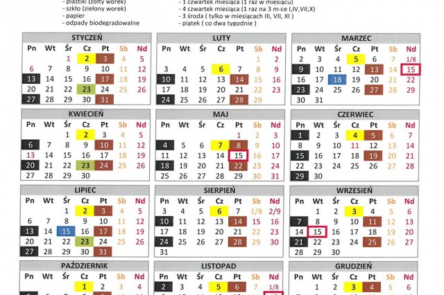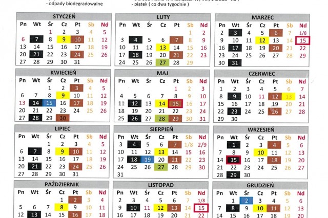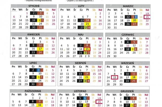 HARMONOGRAM WYWOZU ŚMIECI 2020