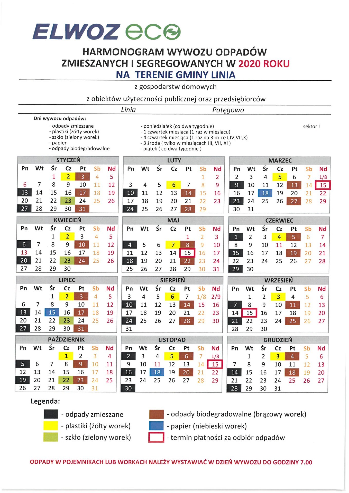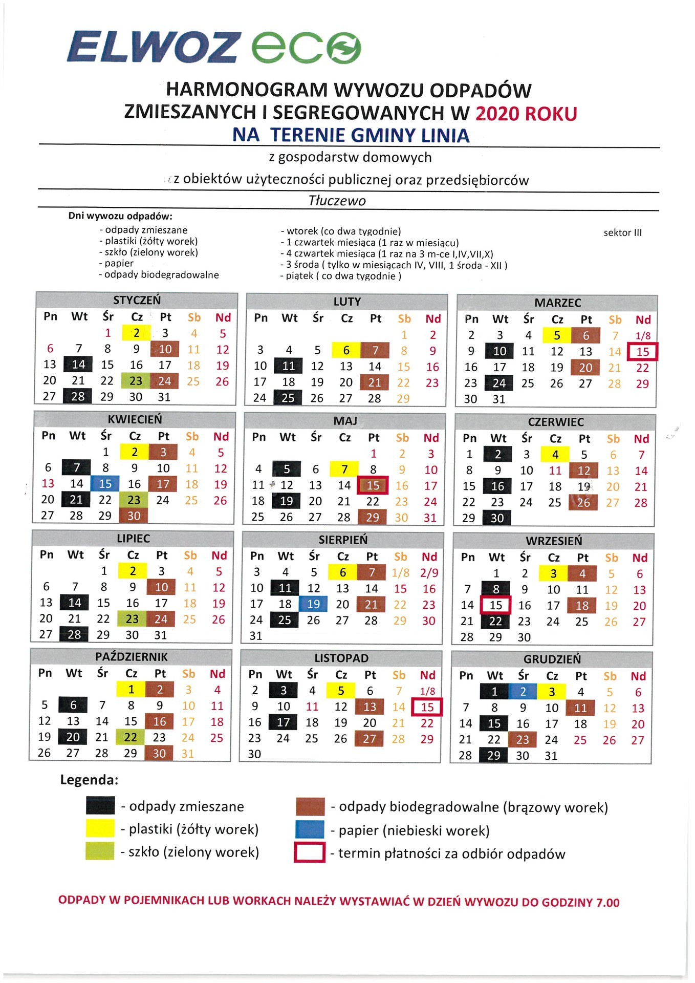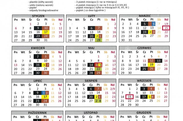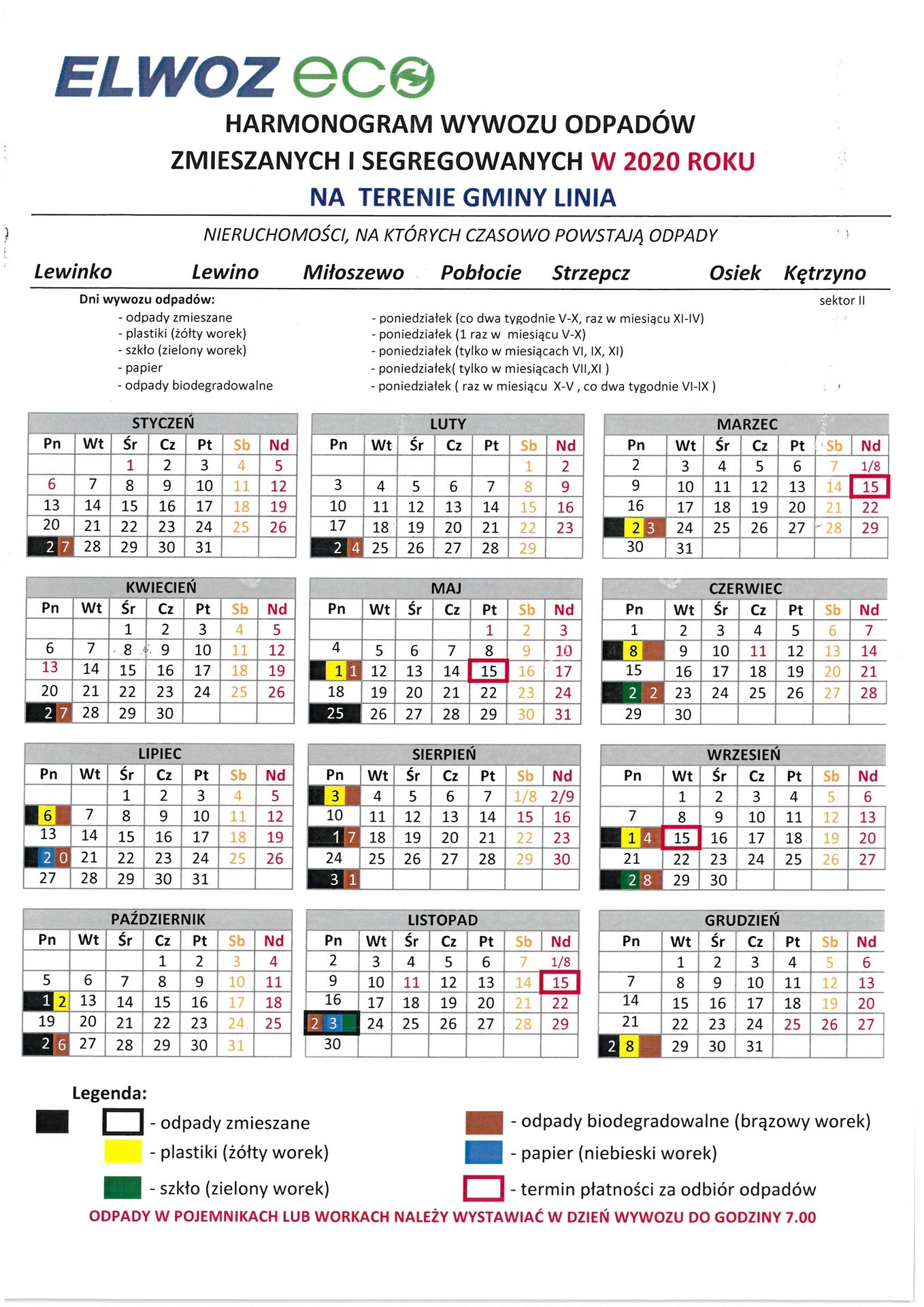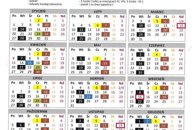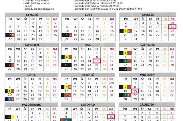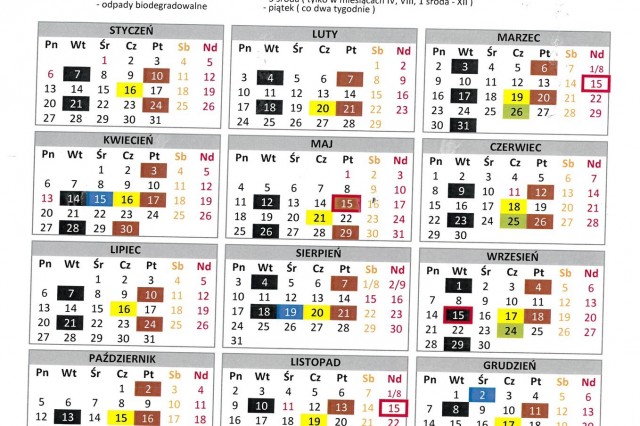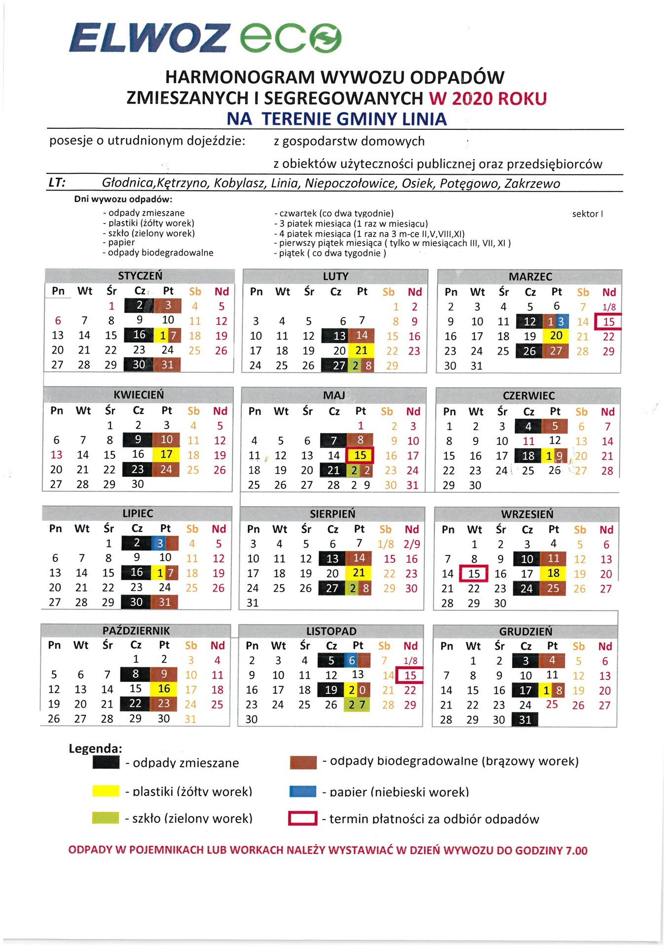HARMONOGRAM WYWOZU ŚMIECI 2020