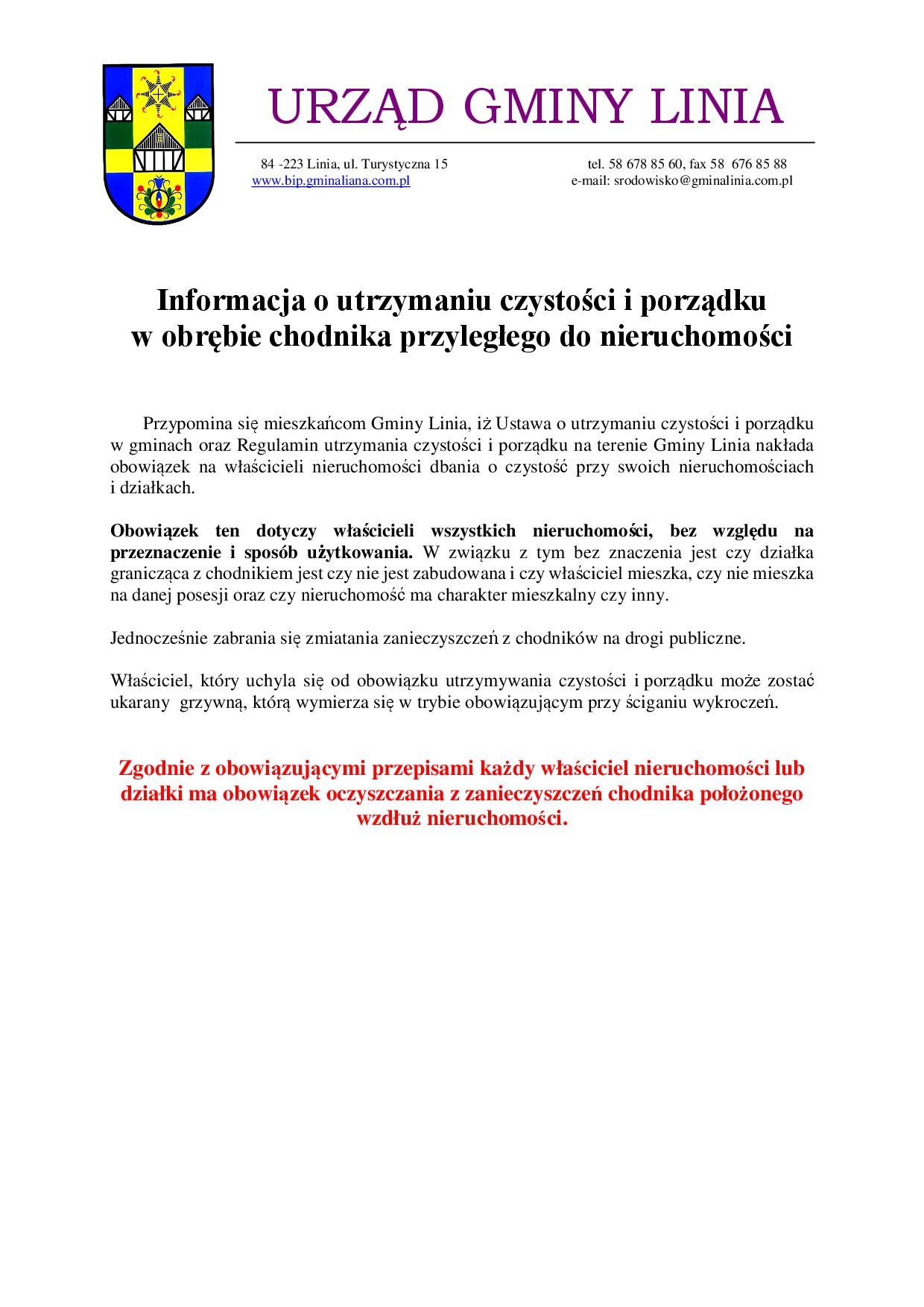 Informacja o utrzymaniu czystości i porządku w ...