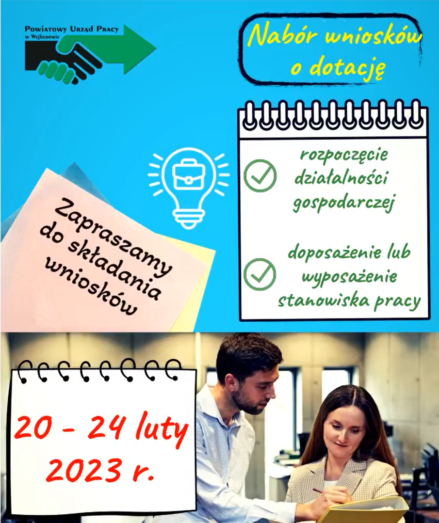 - przyznanie bezrobotnemu środków na podjęcie działalności – termin naboru 20 – 24.02.2023 r.