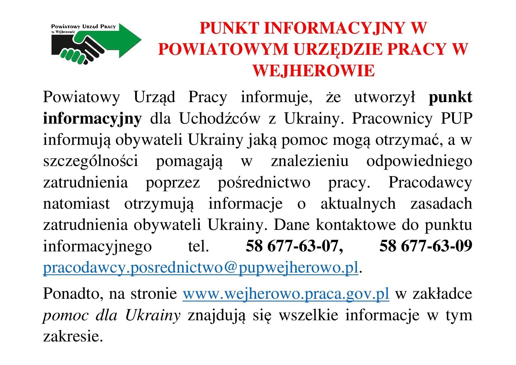Ważna informacja dla mieszkańców, którzy przyjmują uchodźców z Ukrainy. Prosimy o wyjaśnienie z przyjętymi obywatelami Ukrainy, czy przekraczając granicę, nie skorzystali z tzw. odprawy uproszczonej. Jeśli tak – prawdopodobnie nie posiadają żadnego wpisu w dokumentach o przekroczeniu granicy Polski od 24.02.2022 r., co pozbawia ich praw do darmowej opieki medycznej i innych świadczeń, które będzie gwarantować Państwo. W takim przypadku niezbędna jest wizyta w placówce Straży Granicznej. Najbliższe adresy: Straż Graniczna O/Morski, Władysławowo ul. Morska 7, tel. 58 674 43 00, SG o/Morski Ustka ul. Marynarki Polskiej 5, tel. 59 815 53 00 lub Punkt Recepcyjny Gdańsk ul. Dolna Brama 8 (czynny od 8.00-20.00).