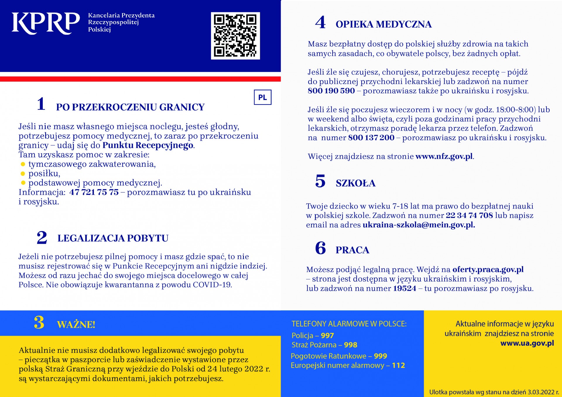 Поясніть, будь ласка, з допущеними громадянами України, чи не користувалися вони т. зв спрощене оформлення. Якщо так – ймовірно, вони не мають жодного запису в документах про перетин польського кордону з 24 лютого 2022 року, що позбавляє їх права на безкоштовне медичне обслуговування та інші пільги, які гарантуватиме держава. У цьому випадку необхідно відвідати пост прикордонної служби. Найближчі адреси: Прикордонна служба, O / Morski, Władysławowo ul. Морська 7, тел.58 674 43 00, СГ о / Морски Устка вул. Marynarki Polskiej 5, тел. 59 815 53 00 або Приймальний пункт Гданськ, вул. Долна брама 8 (відчинено з 8.00-20.00).