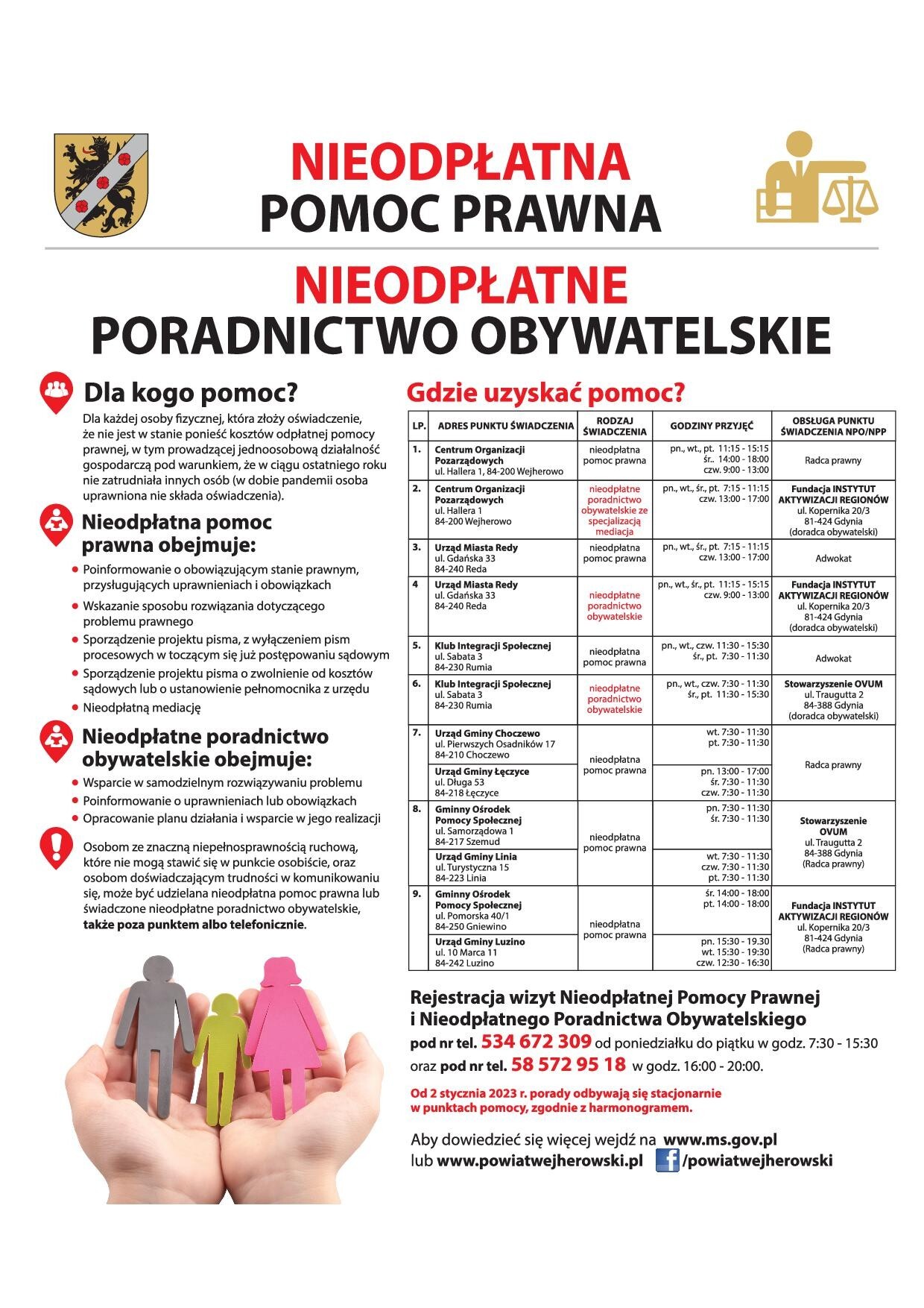 Nieodpłatna pomoc prawna i poradnictwo obywatelskie w 2023 roku