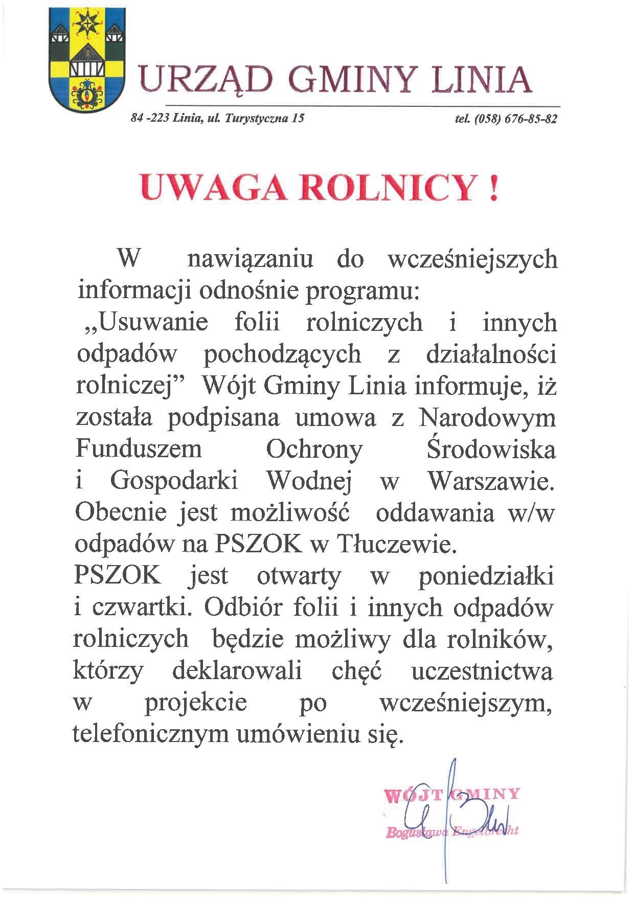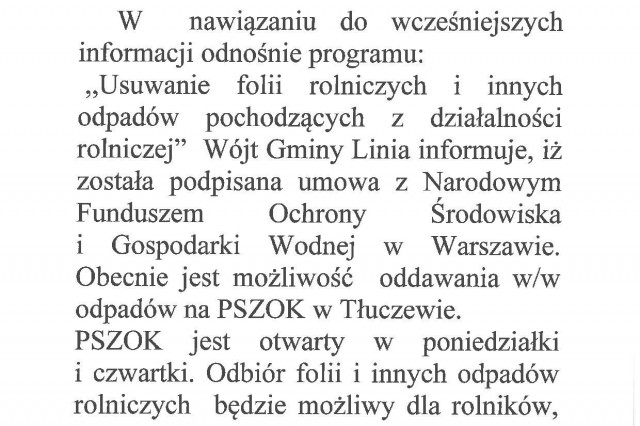 „Usuwanie wyrobów zawierających azbest z terenu gminy Linia"- edycja 2016