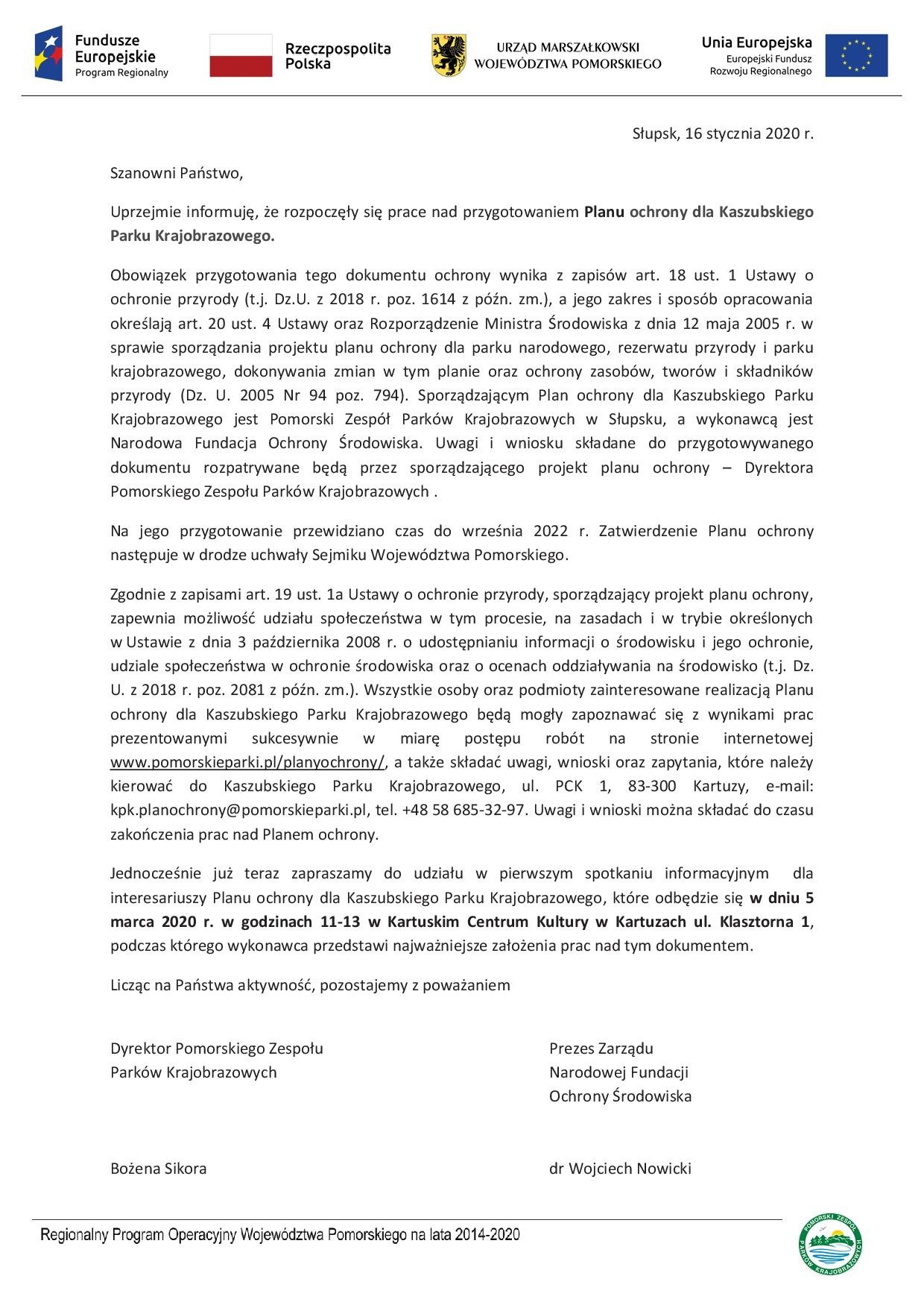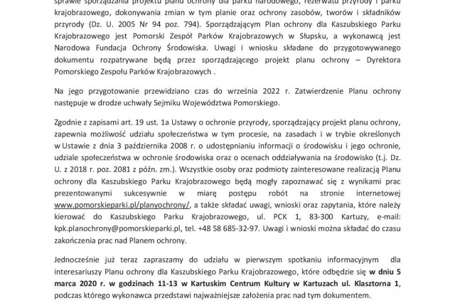 Planu ochrony dla Kaszubskiego Parku Krajobrazowego.