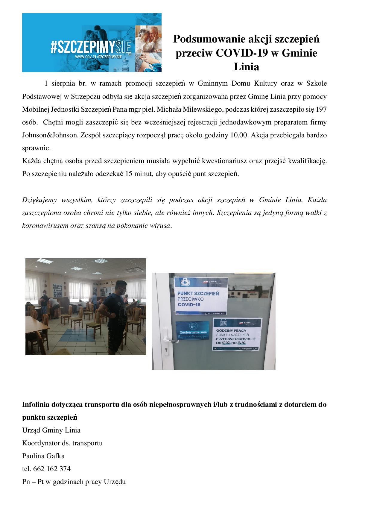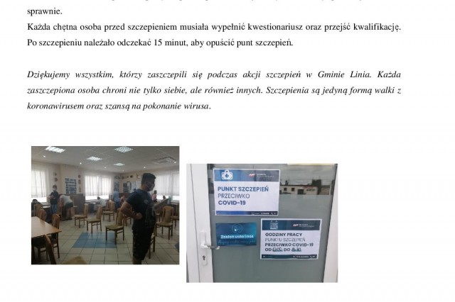 Podsumowanie akcji szczepień przeciw COVID-19 w Gminie Linia