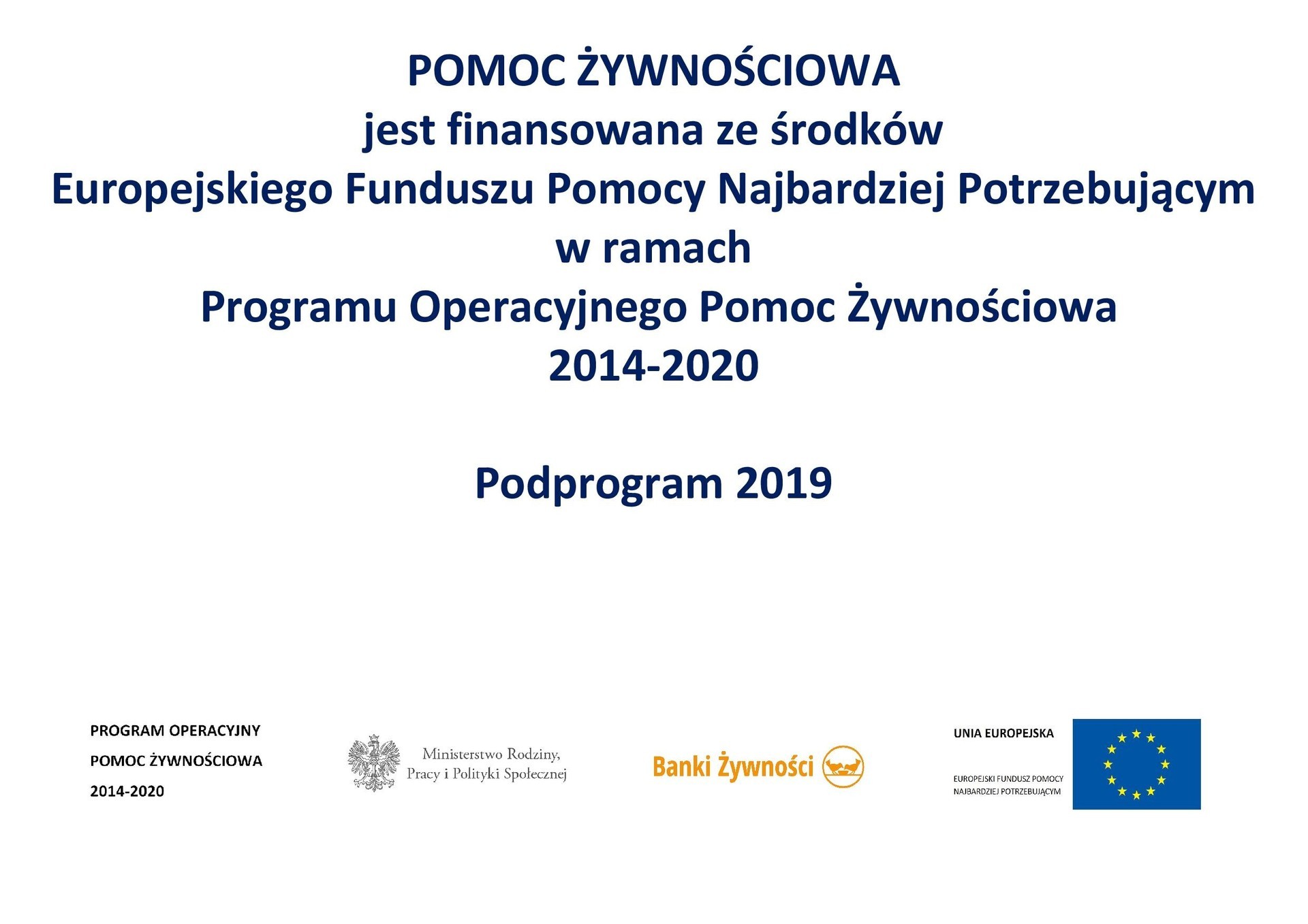 OKRES DYSTRYBUCJI ŻYWNOŚCI: grudzień 2019 – lipiec 2020