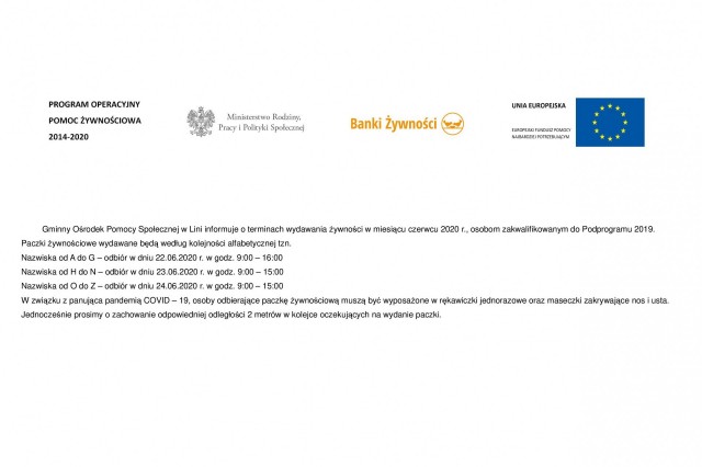 Pomoc żywnościowa - czerwiec