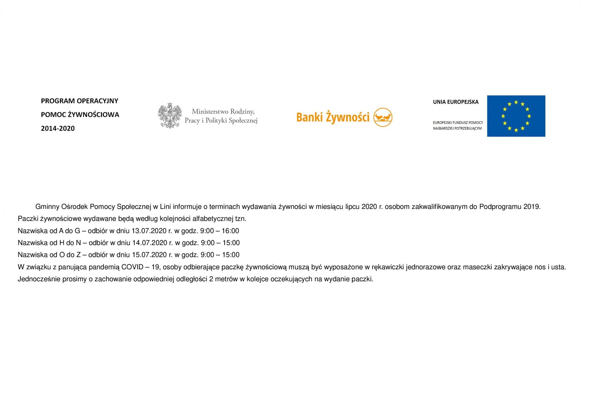 Pomoc żywnościowa - lipiec