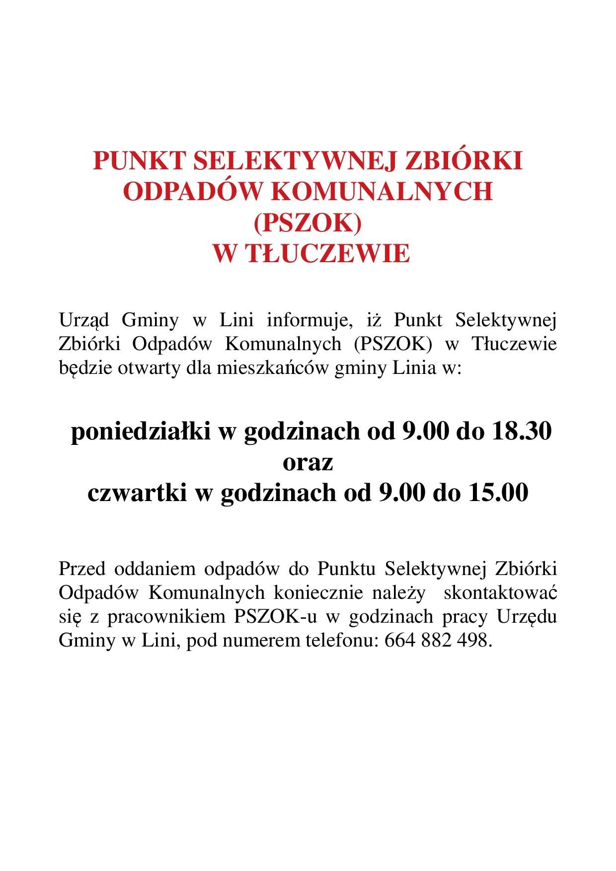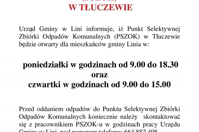 PSZOK w Tłuczewie - zmiana godzin