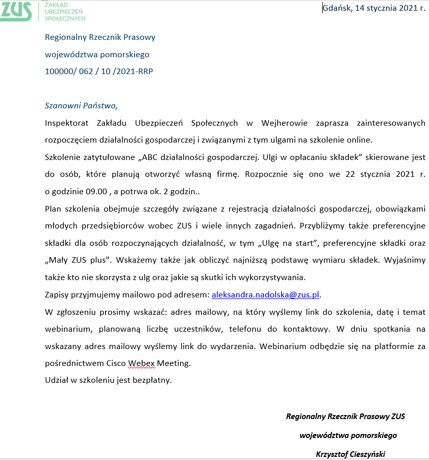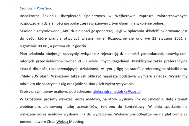 Szkolenie ZUS „ABC działalności gospodarczej. U...