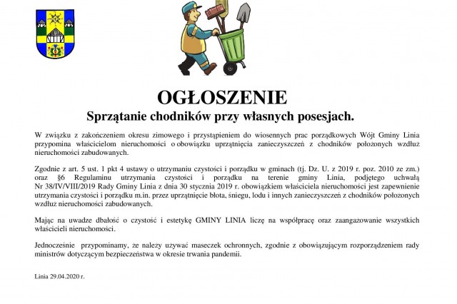 Zarządzenie Nr 16/2024 Wójta Gminy Linia z dnia 20.02.2024r. w sprawie przeprowadzenia konsultacji społecznych dotyczących uchwalenia Strategii Rozwiązywania Problemów Społecznych w Gminie Linia na lata 2023-2027