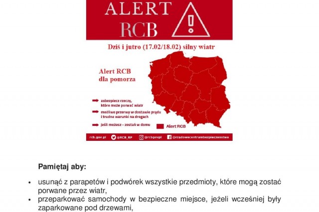 „Uwaga! Dziś i jutro (17/18.02) silny wiatr. M...