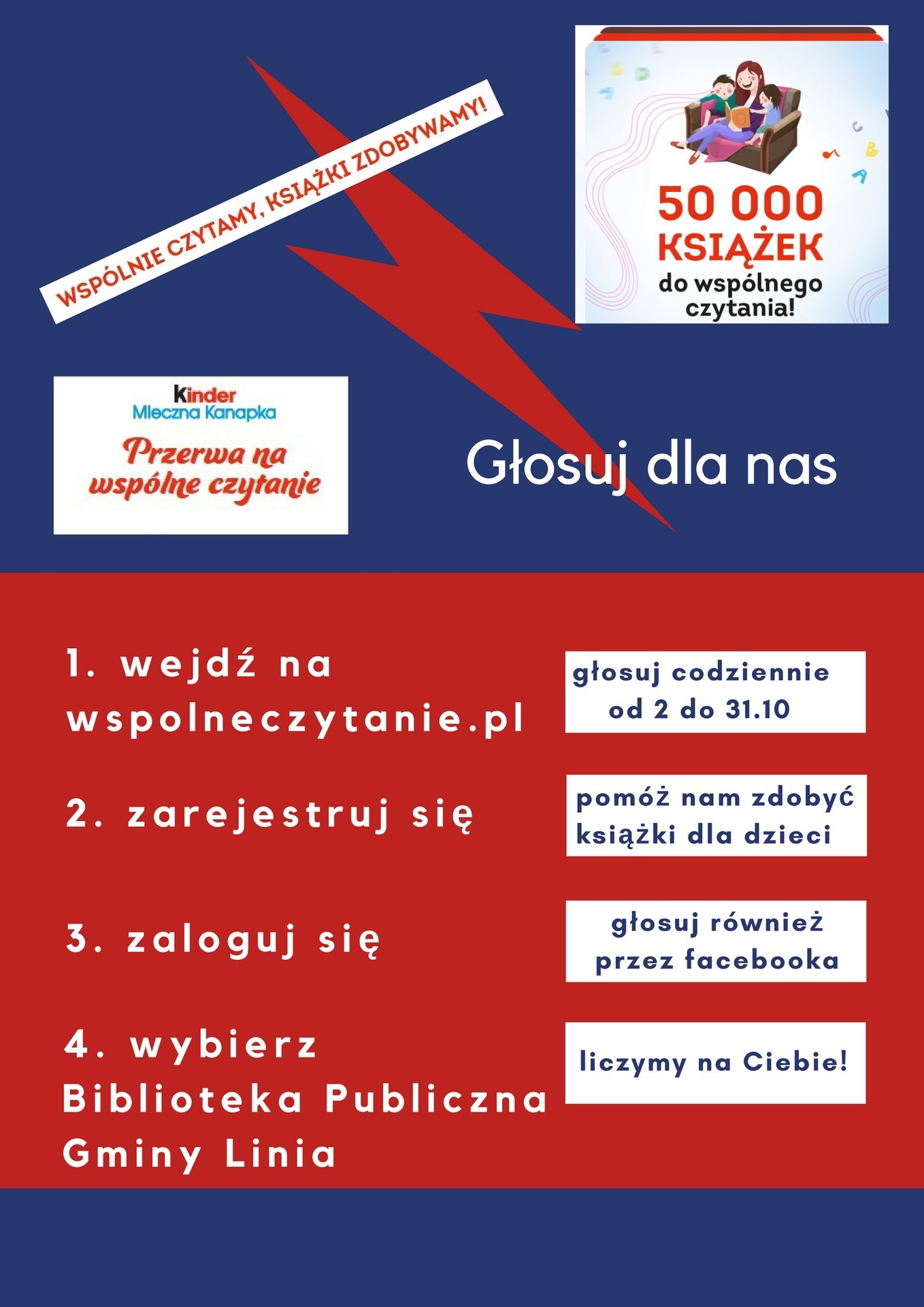Wejdź na wspolneczytanie.pl i zagłosuj na Bibliotekę Publiczną Gminy Linia