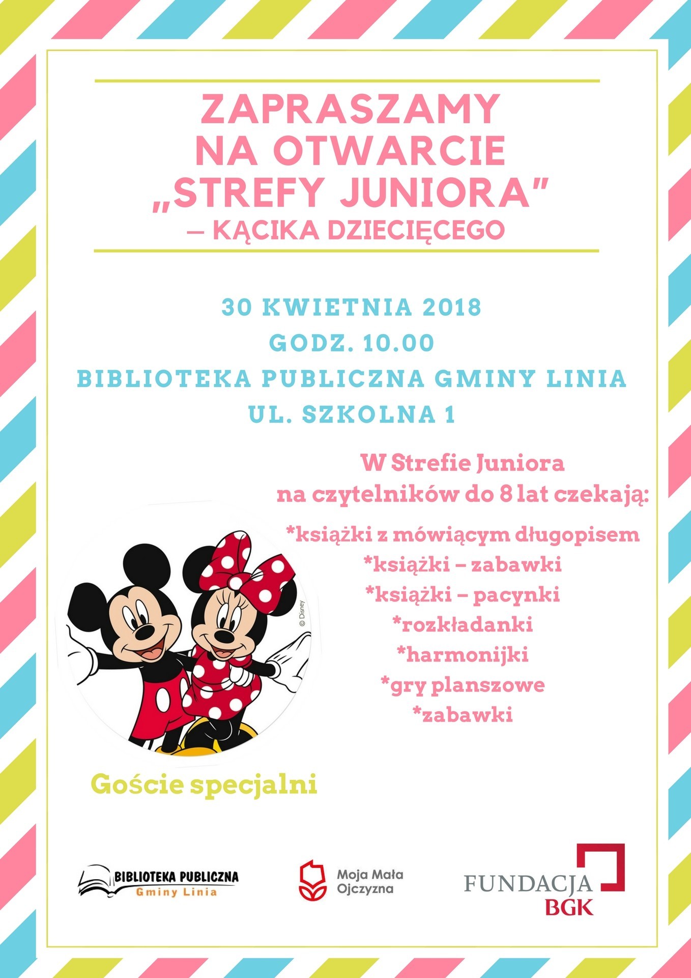 Zapraszamy na otwarcie STREFY JUNIORA w Bibliotece Publicznej w Lini