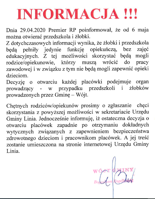 „Tworzenie nowych miejsc przedszkolnych dla najmłodszych mieszkańców gminy Linia w nowej placówce edukacyjnej”