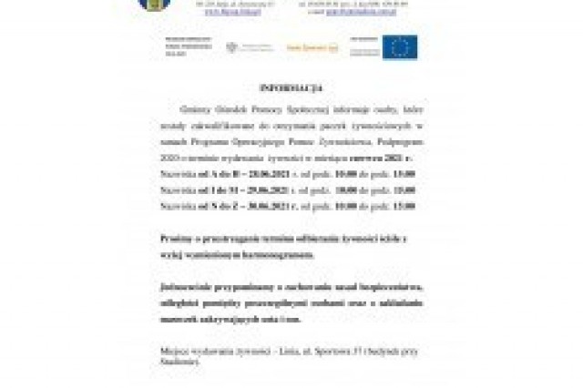 Informacja o wydawaniu paczek żywnościowych