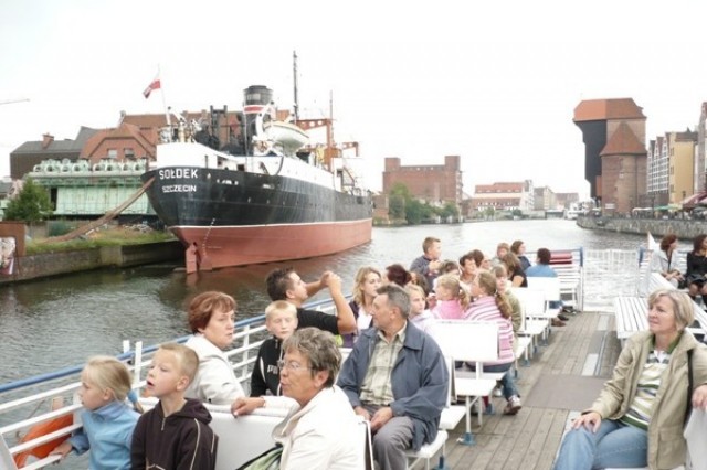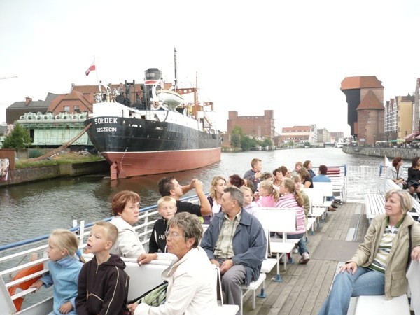 Następnym punktem wyprawy była gdańska starówka. Przeszliśmy długim Targiem by dojść nad Motławę a stamtąd statkiem Żeglugi Gdańskiej popłynęliśmy na Westerplatte. Od strony wodnej mogliśmy podziwiać wielkie dźwigi oraz stoczniowe doki, a także statki, które akurat zacumowały w gdańskich portach. Przepływaliśmy także obok Twierdzy Wisłoujście, która jest zabytkiem klasy zerowej, wpisanym na listę Światowego Dziedzictwa UNESCO.